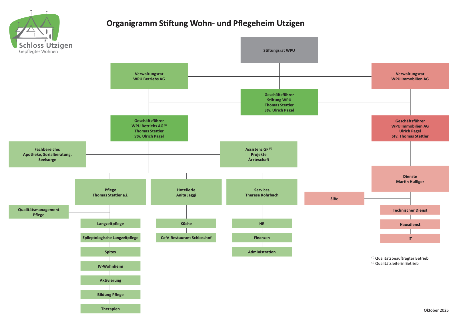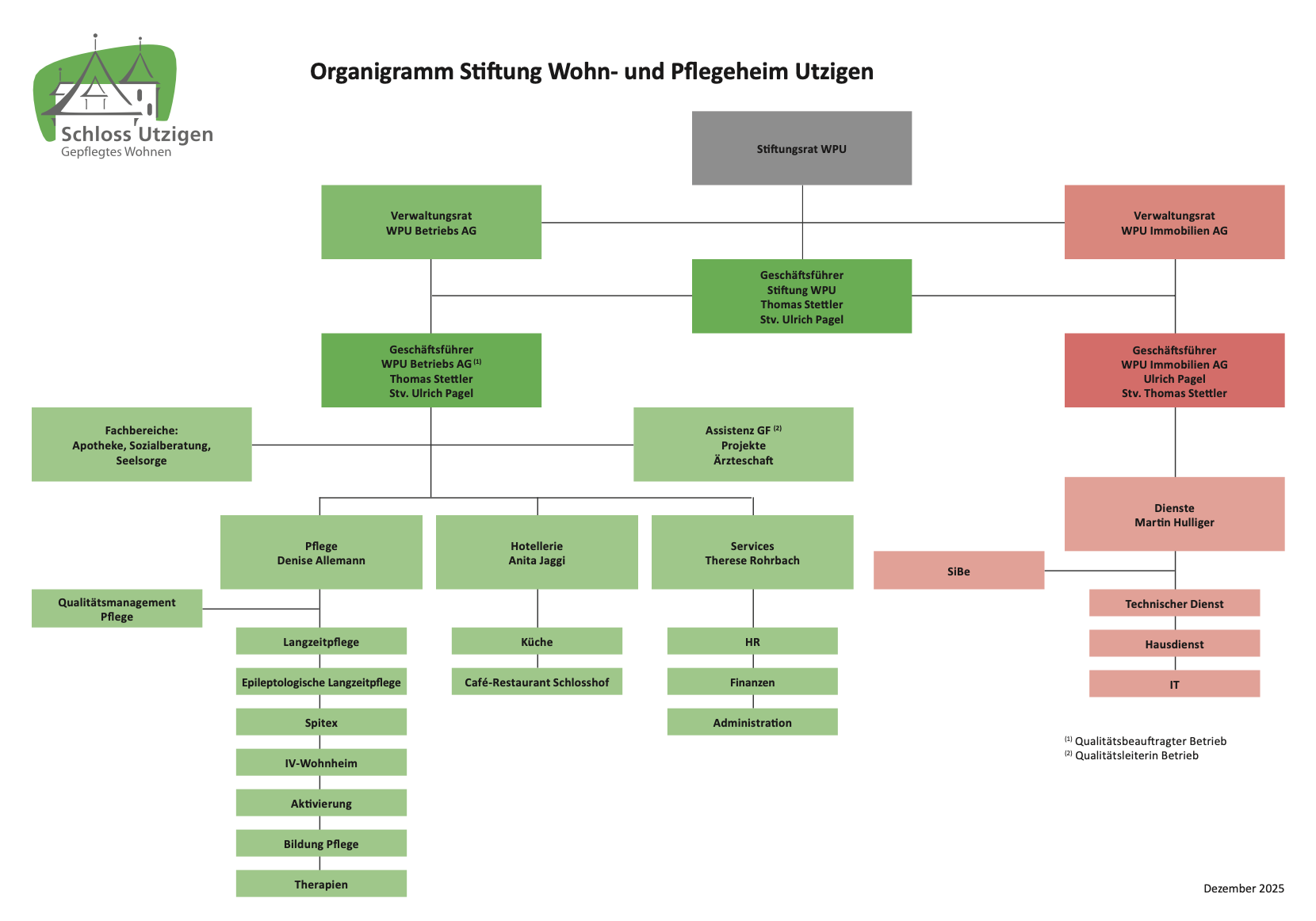 Gegründet von Gemeinden im Berner Oberland war das Wohn- und Pflegeheim Utzigen 138 Jahre genossenschaftlich organisiert. Im Jahr 2013 entschieden sich die Gemeinden für eine neue, moderne Trägerschaftsstruktur. Das Wohn- und Pflegeheim Utzigen operiert heute als Stiftung. Die Wohn- und Pflegeheim Utzigen Betriebs AG und die Wohn- und Pflegeheim Utzigen Immobilien AG sind hundertprozentige Töchter der Stiftung und kümmern sich professionell um den Betrieb und die Liegenschaften.